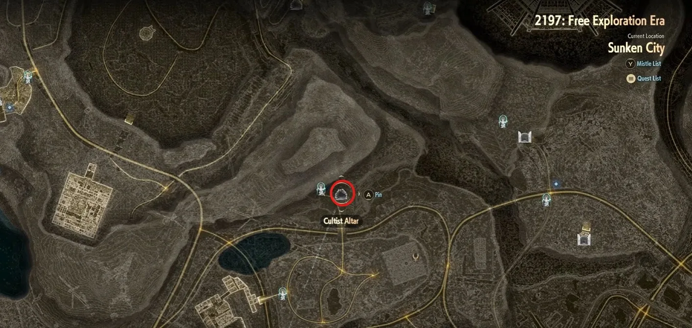 Fast travel to the Cliffside Ruins in Sunken city. To its north-east side there is Cultist Altar. The path is not that much straight forward here’s the detailed images that you can follow to reach there.