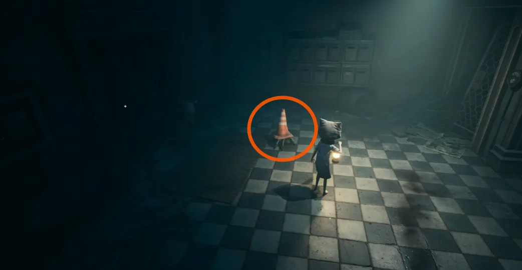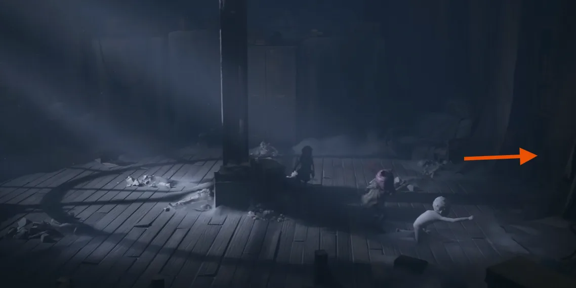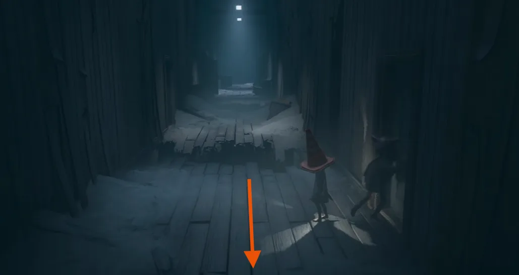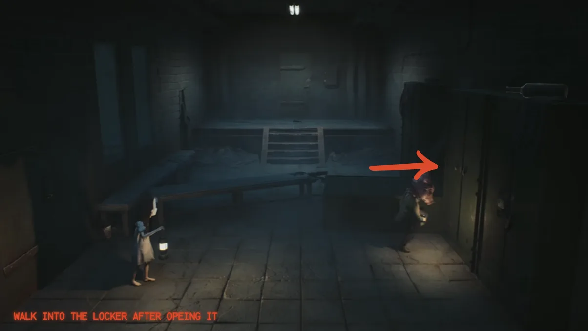 After solving the platform puzzle in chapter 1, you will enter a room of locker. Pass through a demolished wall that is behind the locker ahead of you. The path from the broken wall is not visible because of the camera view angle and low light. For clarity you can see the image below.