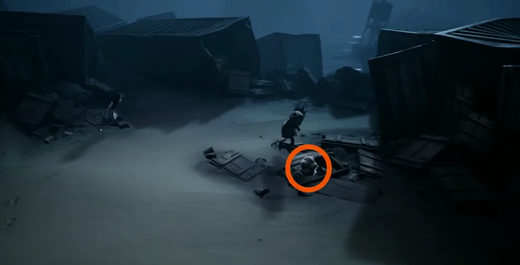After getting the boat and following the normal storyline you are supposed to land near the big boat but instead head right from the giant boat where you will find one more mine blocking the path. Blast the mine to make way through it. Continue to your left where you can set a foot on a small land with some abandoned containers.