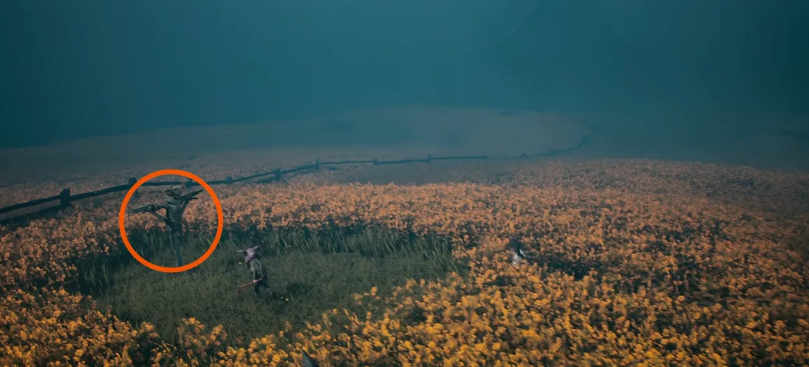 By staying on the left side there is a barn and in there is a scarecrow. Arm your crowbar and hit the scarecrow. By hitting the scarecrow, you will reveal second critter of the game.