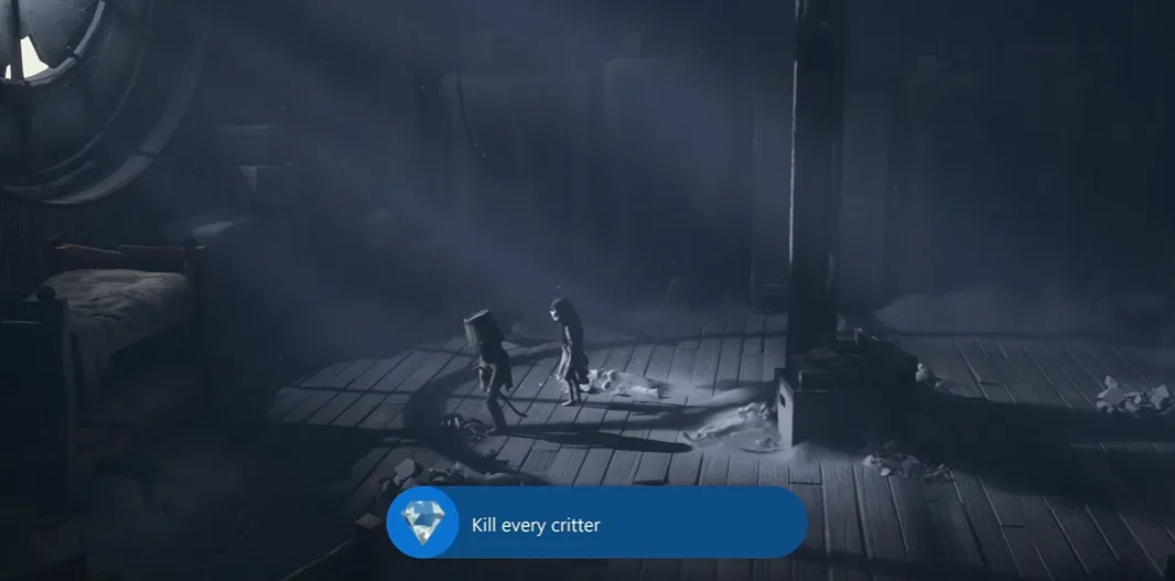 Once you enter the building through the broken glass of large clock, you will end up in a room of some petrified statues, destroy these to unlock Scared to Dust trophy/Achievement. From this room crawl through the bookshelf n the right side of the room.
