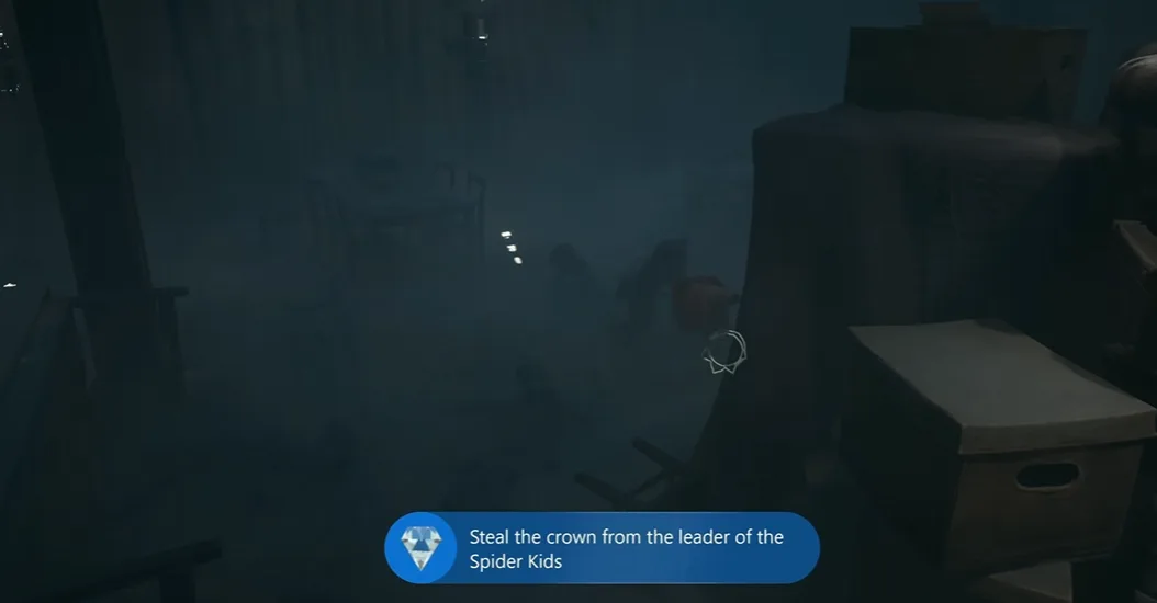 As story progress you will reach in a room where a king is sitting on a throne in the middle of the room. In this room you will be attacked, use crowbar to hit them. Your goal here is stop the king from fleeing. To do that head behind back corner of the room so that when the kind try to run away hit him and he” drop a mask.