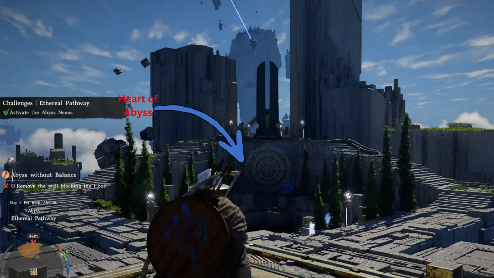 Now just follow the path of hanging platforms until you will reach the heart of the Abyss. Once you reach there you will doing the following task: