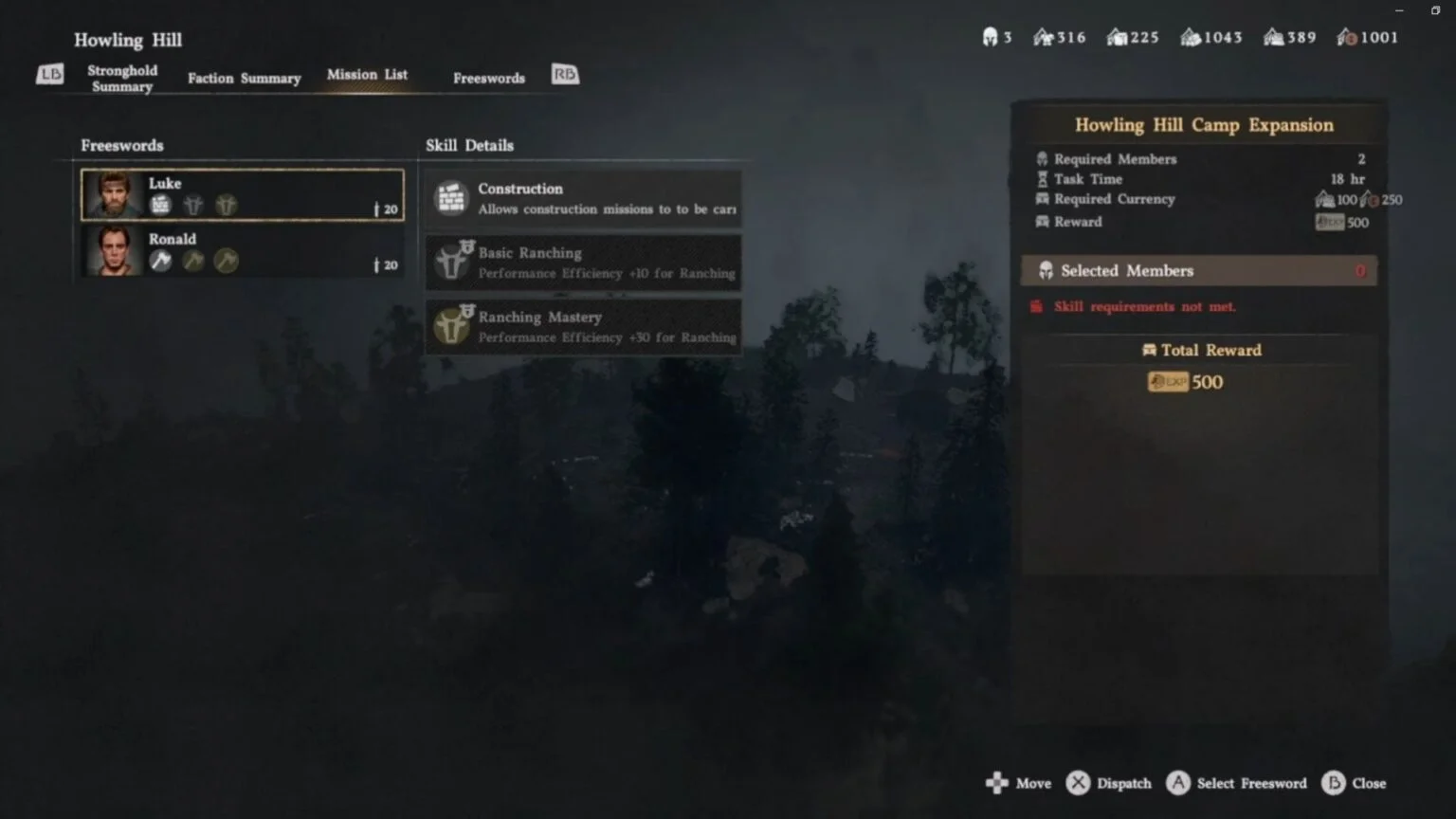 What you need to do is open your map and hover over the Howling Hills Camp icon, hold down the Triangle button on PlayStation or X on Xbox to open the camp menu. Navigate to Missions, select Recruits you wish to send for this quest, and dispatch them.