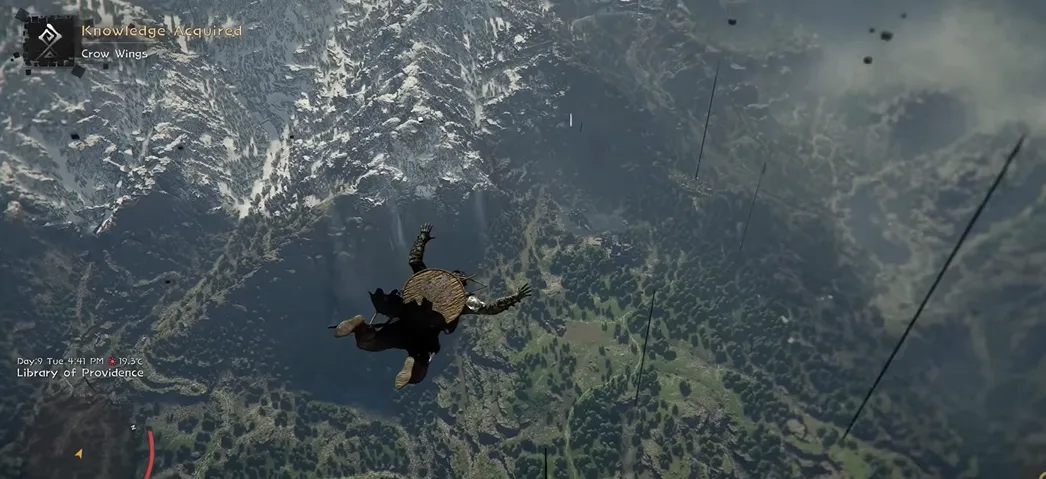 Additionally, when you complete the dialogues with him and the witch you will acquire the knowledge of crow wings here as well.