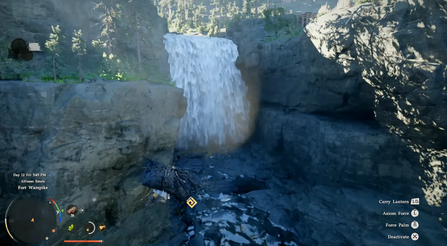 Tip: Stand as close as possible to the waterfall to successfully Stab your way in.