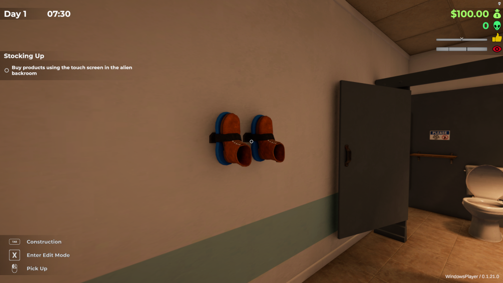 Tip: Drop cleaned boots near pumps or register for quick access (they respawn in bathroom daily).