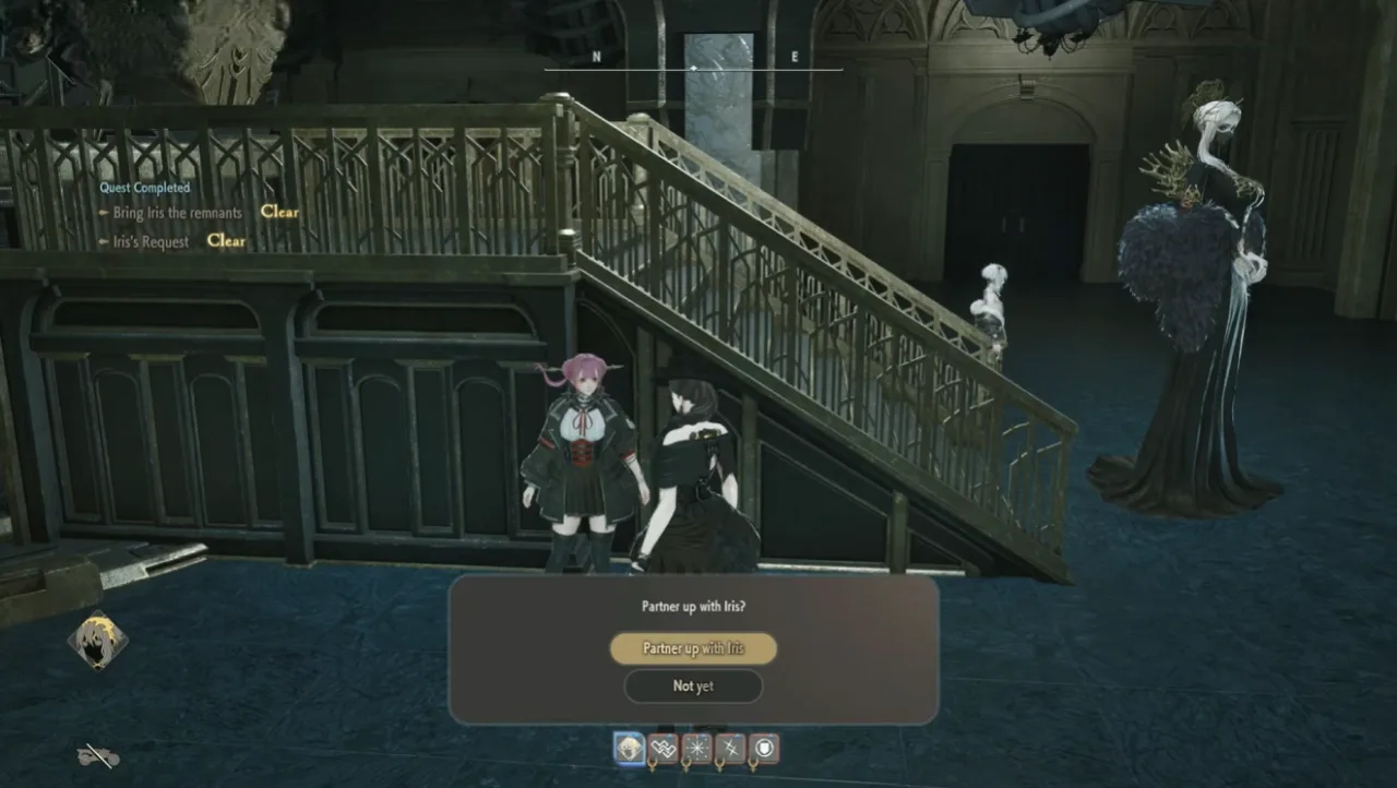 | Partner | Iris MagMell | Hammer synergy + Defense Up/Vitality buffs. Draws aggro for free backstabs (Noah gift if swapped). |