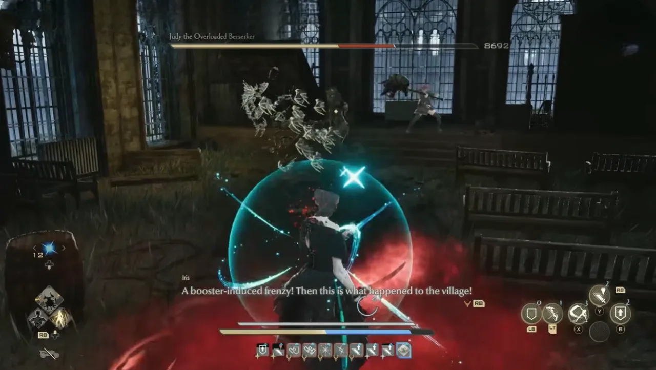 Iris is a big help in this fight so heal her when she’s low because she can tank pretty well. Charge heavies after combos and use partner’s attacks to break her poise. Make sure to buff stamina before Phase 2.