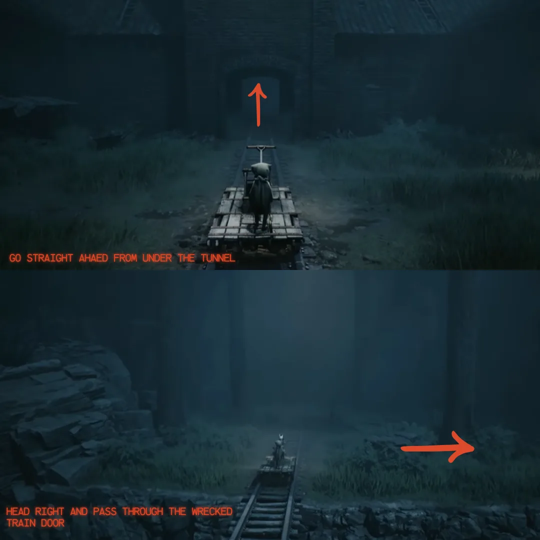 | 1: Dead in the Water | After handcar bridge, right along tracks through derailed trains |
