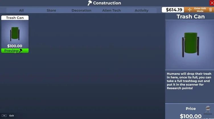 These Alien upgrades give you new tools like when you unlock Trashcan for 300 alien points it will allow humans to throw their trash you will just have to manually empty it.