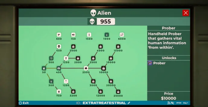 Lastly, very late in the game you will unlock Prober for 10000 alien points that can gather important human information from within.