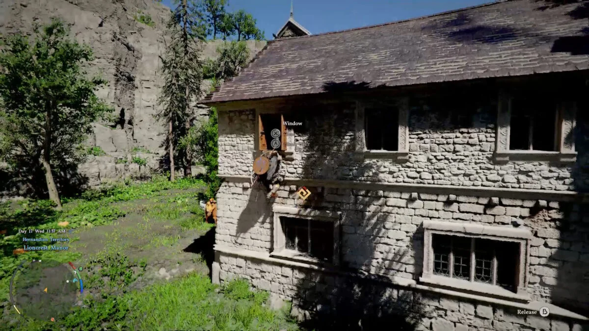 To get the Hwando Katana, go inside the building to the right of the Lioncrest Manor. Go in through the closed window (interact to open), avoiding the guards. To your immediate right should be a locked door. Use the key we stole earlier to unlock this door. Keep the key in your inventory to unlock the door automatically.