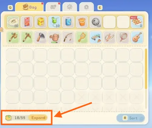 By default, you will start at 30 slots, and you can get additional 40 slots by upgrading 8 times in Starsand Island. Each upgrade gives you an extra 5 slots which isn’t that much. Here’s what you will do to increase bag/inventory space: