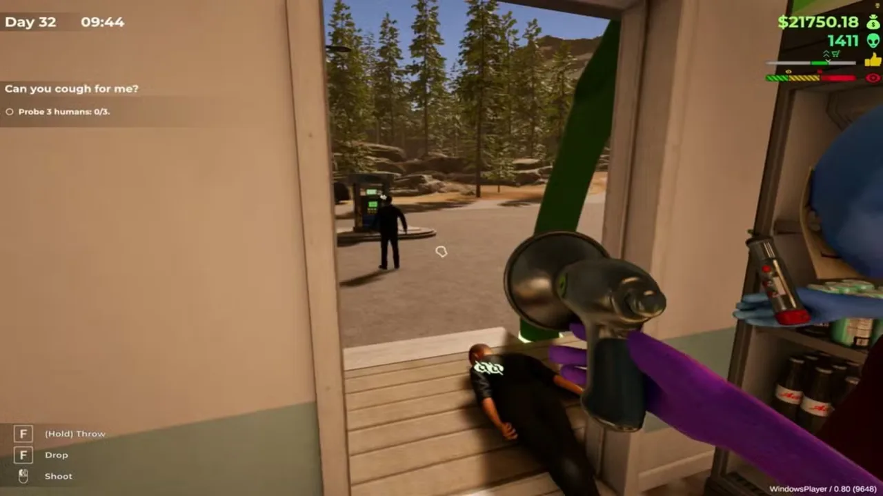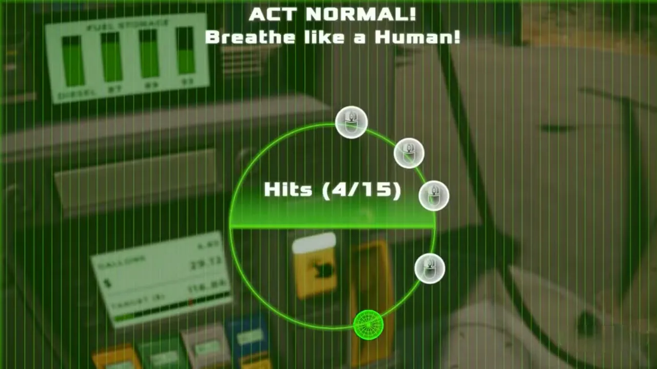 They will arrive at your gas station start poking around, and worse case, and will interrogate and if you fail you will be hunted down and ‘conked.’ Agents pull you aside for one random mini-game: Breathe Like a Human, Blink Like a Human, or Fart Like a Human.