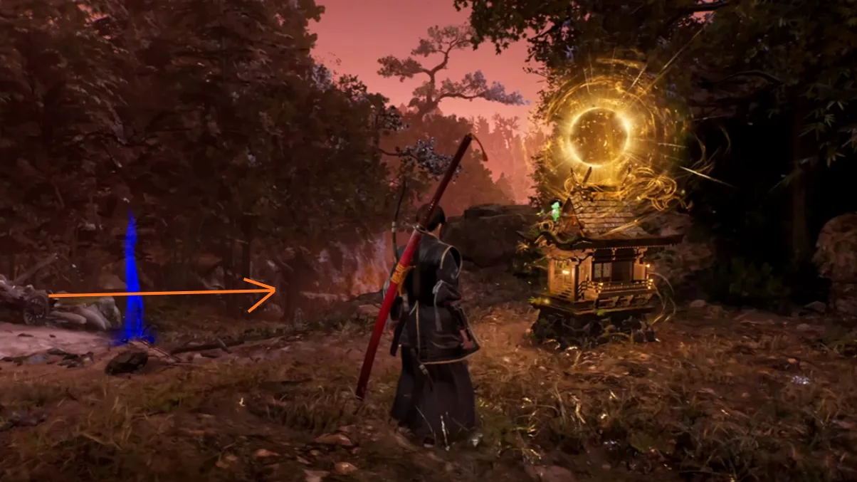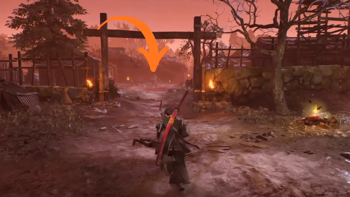 Now head left to main entrance of the village or if you have slayed the Yokai then from its right side.