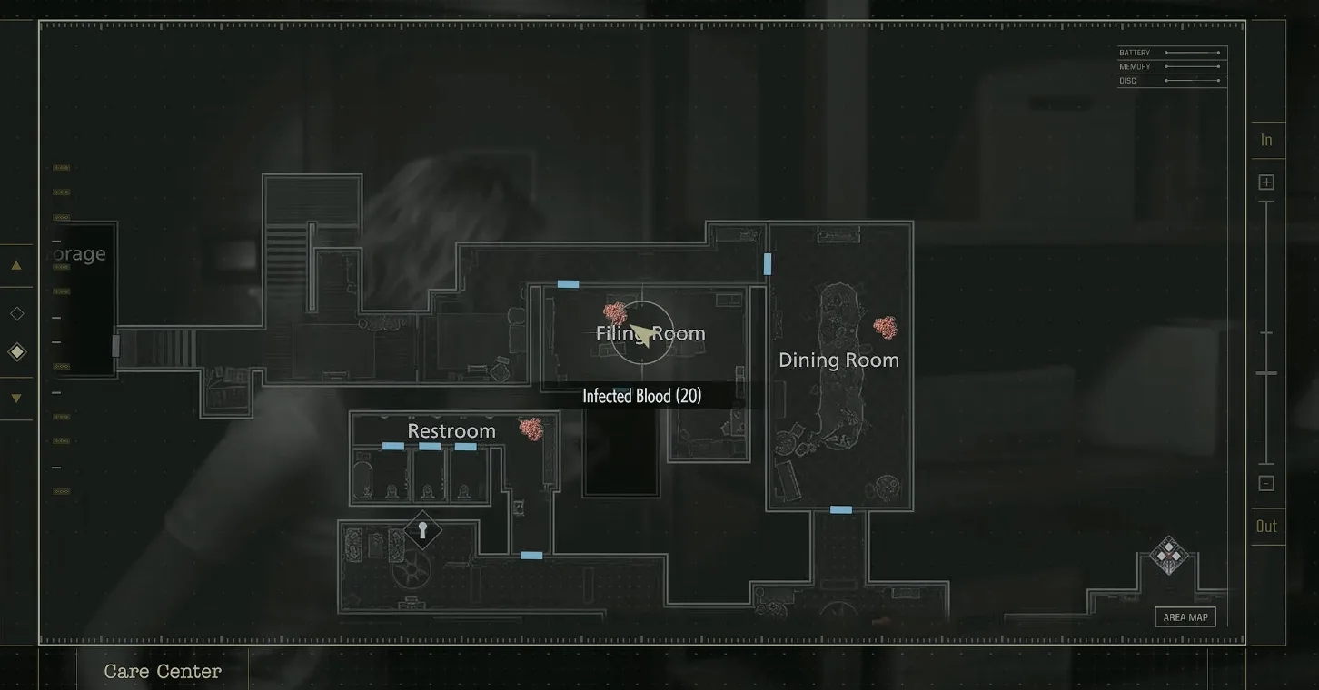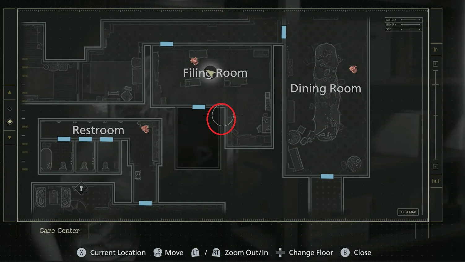 The third Hip Pouch is in the Processing area of the Basement in the Care Center. Go to the location shown in the map above and take out the Join Plug from this terminal. You will also need the Forklift Key.