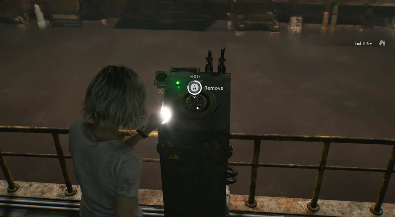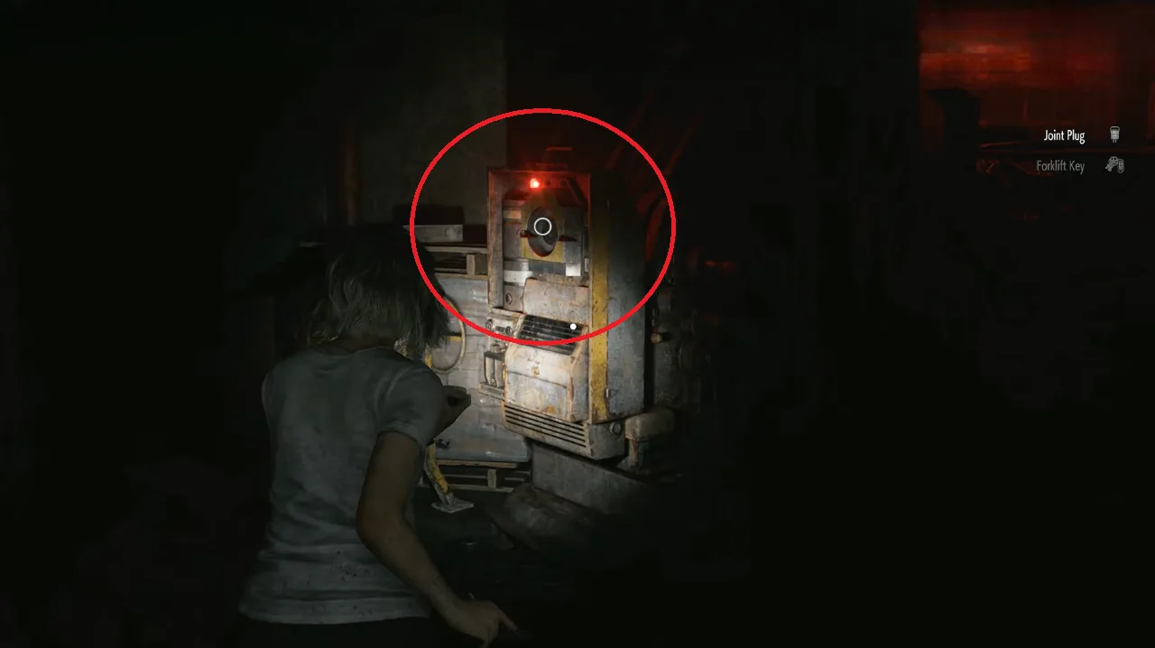 Insert the Forklift Key in the Forklift near the terminal to activate it, moving it away from the door of the next room.