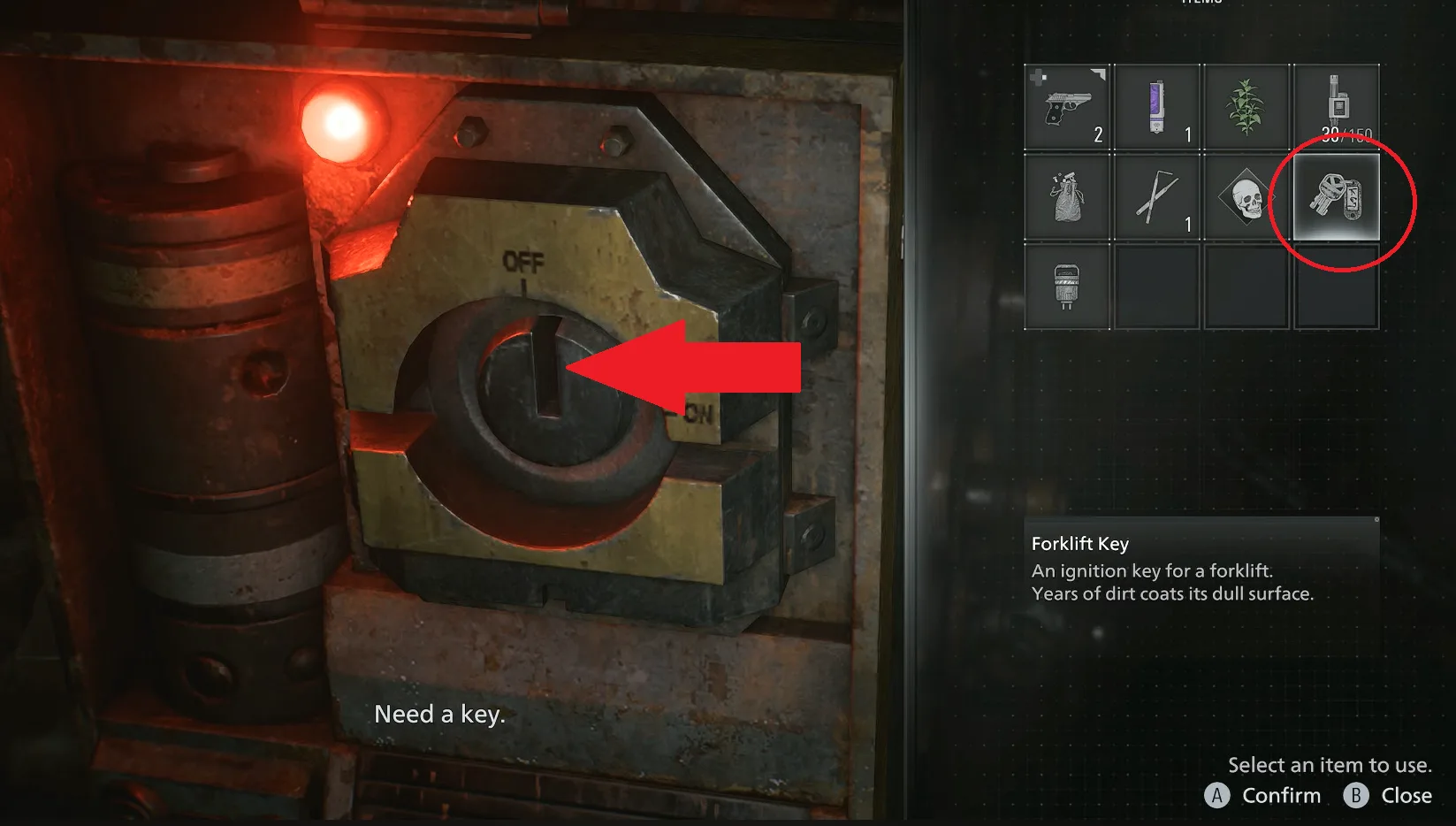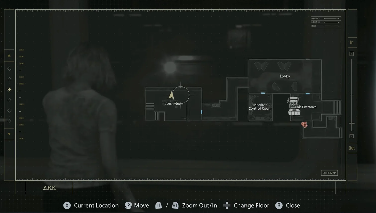 From the location shown in the map above, head down the stairs to find a giant containers Grace can unlock with her hand print.