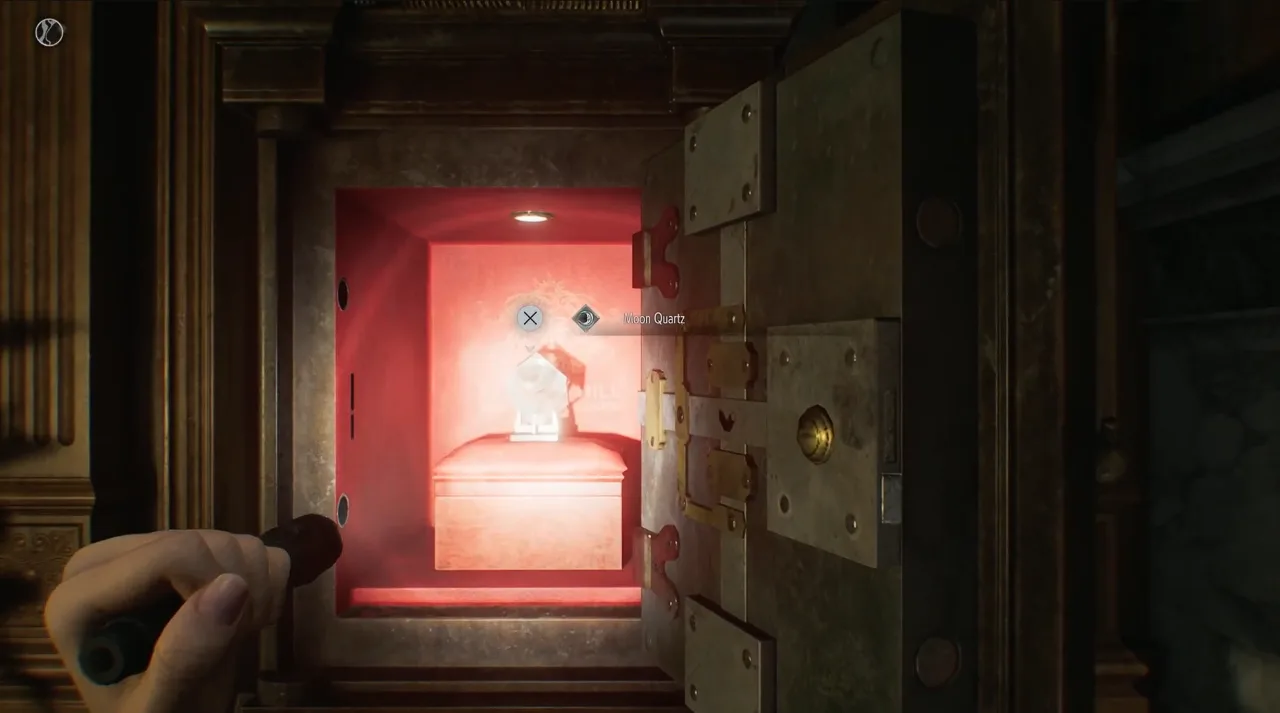 The Moon Quartz is found inside the Chairman’s Office in the West Wing. It is locked behind a safe that requires you to solve another small puzzle. The solution to the puzzle inside the Chairman’s Office is Moon, Sun, Star, Moon. Take the pencil from the Chairman’s desk and come back to the main room where the coffee table is in the middle of the room.